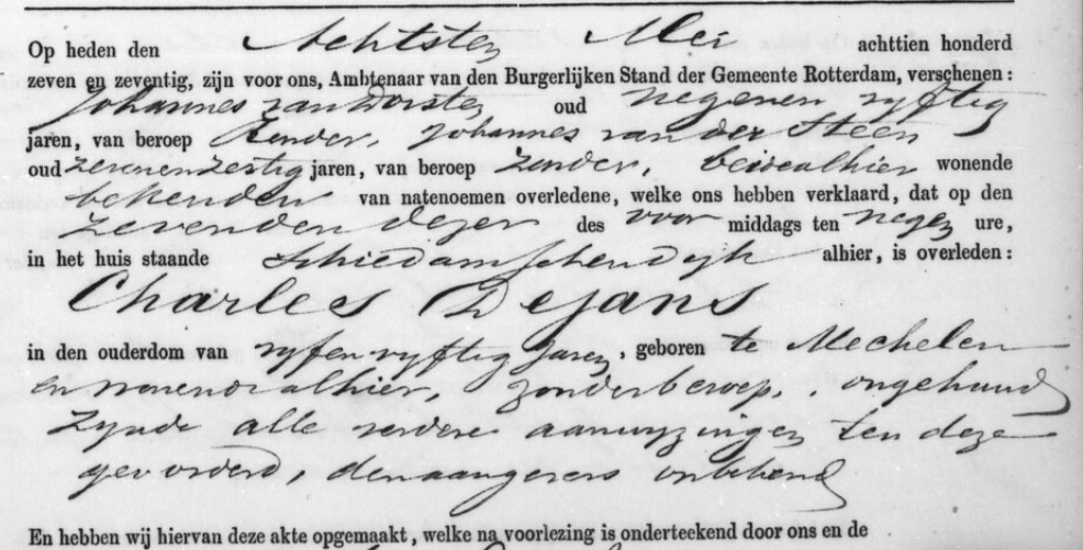 +Hansbeke, 16.10.1870, in Dorp ten huize van Charles Lambert, zijn schoonbroer.