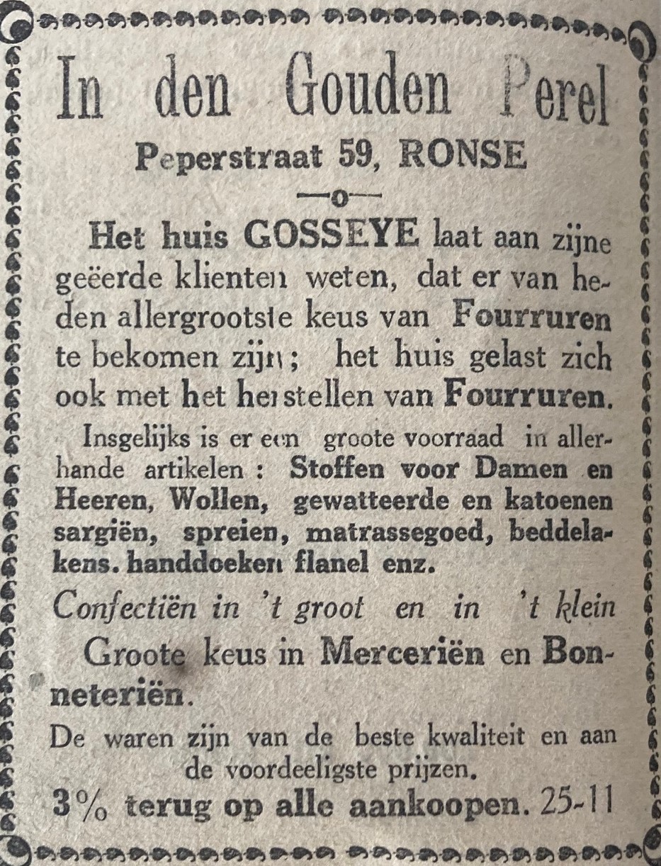 Zaak van Ostijn – Depoortere op het St Martensplein (nu Kerkplein), waar juwelen, hoeden en mutsen verkocht werden.