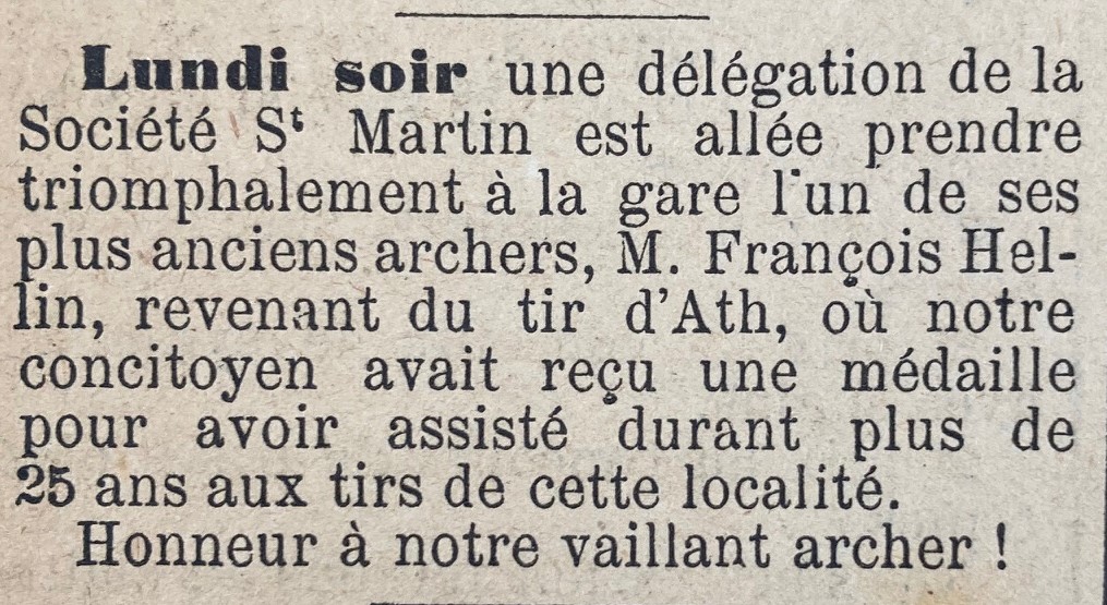 -5 nov. is er een wedstrijd op de Bruul tussen de St.-Sebastiengilde en de St.-Martinusgilde en nemen volgende leden deel: Edouard Lefebvre, Charles Penson, Edmond Vanobost, Frans Dewaele, Arthur Bouchez en Francois Dussart